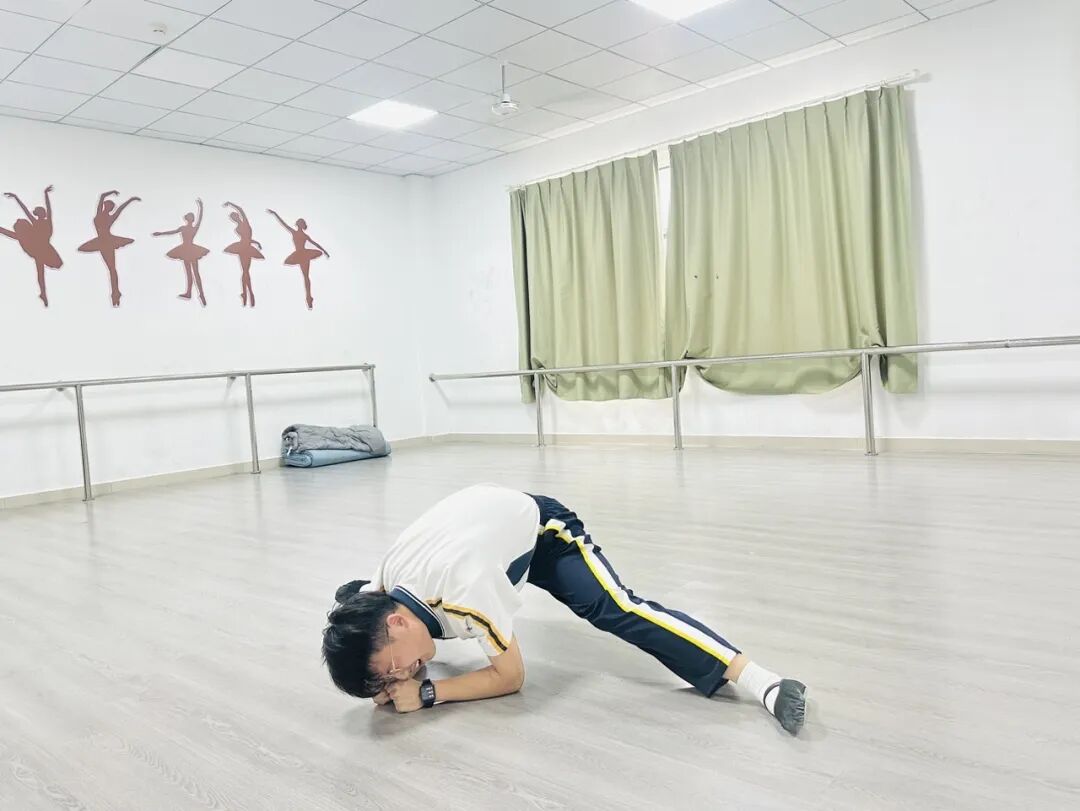 在练功房里,压腿、下腰、跳转翻,每一个基本功都要反复打磨上百遍;组合、剧目、表现力,每一个细节都要精雕细琢、精益求精。无数次的重复练习,换来的是肌肉的酸痛与疲惫;无数次的咬牙坚持,源于对舞蹈的热爱与对未来的向往。我深知,舞蹈没有“一蹴而就”,唯有脚踏实地、勤学苦练,才能在考场上从容自信,才能让每一个动作都充满力量。